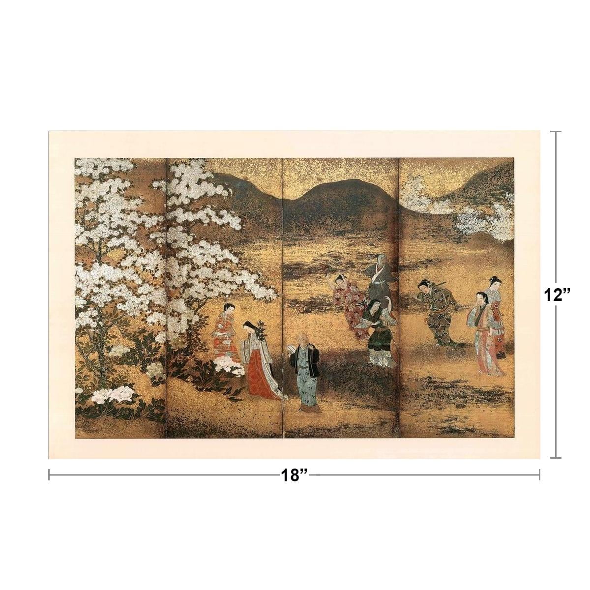 Cherry Blossom Viewing Japan Japanese Wall Decor Oriental Edo Period Panels Gold Leaf Kanei Era Hanami Flower Viewing Hana Sakura Plum Bloom Landscape Artwork Cool Wall Decor Art Print Poster 18x12